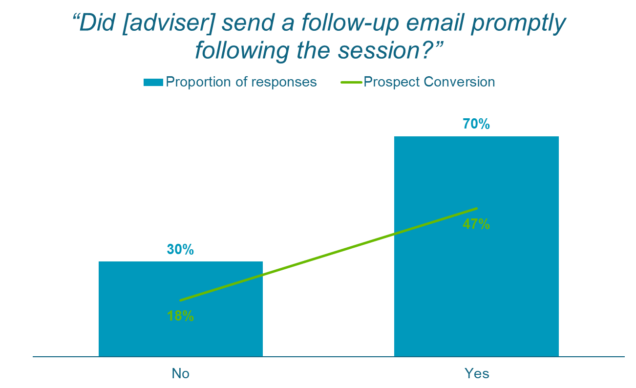 Sending a prompt follow-up email arose as a key driver of conversion through our qualitative research with firm management teams, advisers and clients.