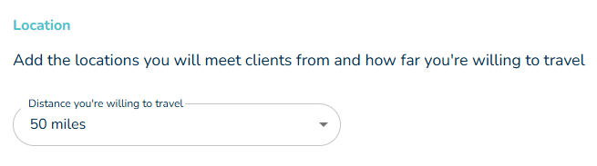 Increasing your travel distance ensures your profile appears in results for clients who are further away – helping you reach more people who may benefit from your advice.